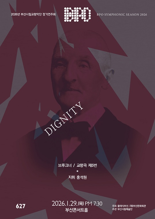 부산시립교향악단 제627회 정기연주회 디그니티(DIGNITY)음(音)으로 지은 대성당의 위엄, 1월 29일 19:30, 부산콘서트홀부산시립교향악단(수석객원지휘자 홍석원)의 2026년 첫 정기연주회가 열린다. 협연자 없이 지휘자와 교향악단만이 무대에 올라 교향음악의 진수를 선보이는 부산시립교향악단 제627회 정기연주회 <디그니티(Dignity)>가 1월 29일(목) 부산콘서트홀에서 관객을 만난다.