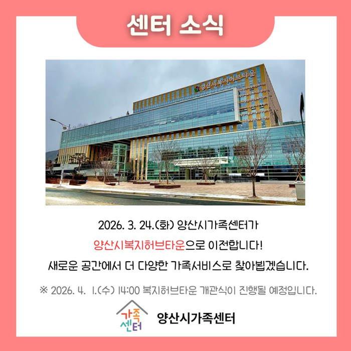▲ 양산시가족센터 2026. 03.24(화) 양산시복지허브타운으로 이전 © 김중건