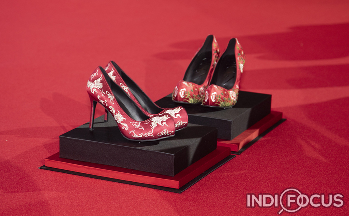 ▲ 배우 메릴 스트립과 앤 해서웨이가 받은 꽃신형 하이힐. 왼쪽이 메일 스트립이 받은 하이힐이고, 오른쪽이 앤 해서웨이가 받은 하이힐이다. © 김한솔 기자