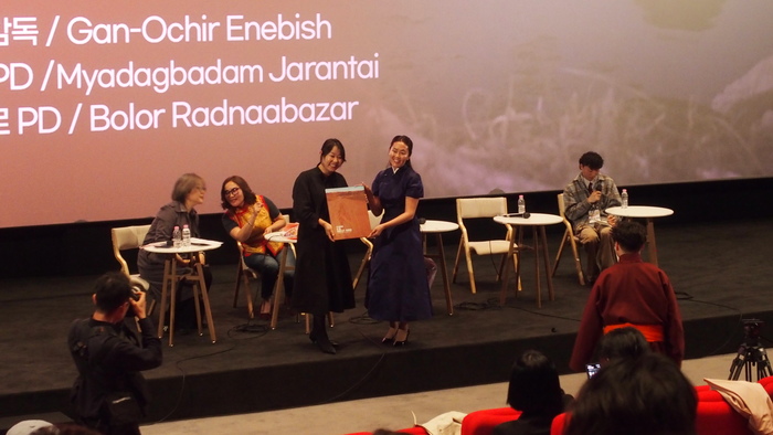 4월 16일 개막식 이후 <대 고비사막의 수호자> 상영 후 간어치르 에느비시 감독과 며닥바담 자란타이, 벌러르 라드나바자르 프로듀서가 참석해 관객과 직접 소통했다.