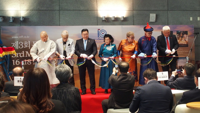 관객과의 대화 후 쳉겔 몽골영화진흥위원회 위원은 제3회 몽골영화제 상영작을 제작한 감독 PD 그리고 몽골 국민적 배우들에게 감사의 꽃다발을 전달했다.